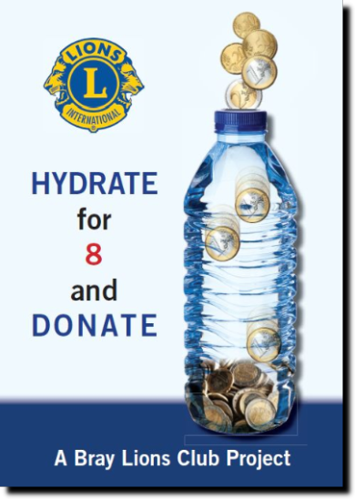 The 'Hydrate for 8 & Donate' programme involves participants replacing their intake of alcohol, tea, coffee and soft drinks with water for the period of 8 days and donating their savings to Bray Lions Club charities.